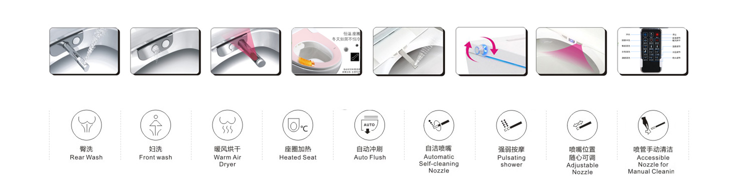 Enter公司堅持不懈的自我完善,倡導產品以人為本、科技為先,服務優(yōu)質高效。以生產研發(fā)高質量的產品為目標,繼續(xù)推動創新與發(fā)展,使產品的系列化、多樣化與結構的多元化,滿足不同客戶的差異化需求。 公司研制的智能馬桶豪潔、舒潔、美潔三大系列產品款式引領衛浴時尚潮流,造型多變,設計精美小巧,生動的展現現代藝術精髓,彰顯世上而富有情趣的生活空間是賓館、酒店、寫字樓及家庭裝潢的理想選擇。